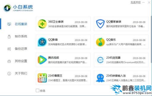 3.小白系统工具提供了一些常用软件给大家选择,选择您需要的软件,点击下一步继续。