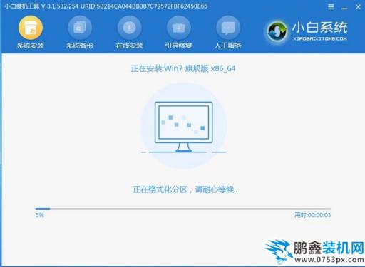 8.进入小白pe界面后小白装机工具会自动开始安装win7系统。