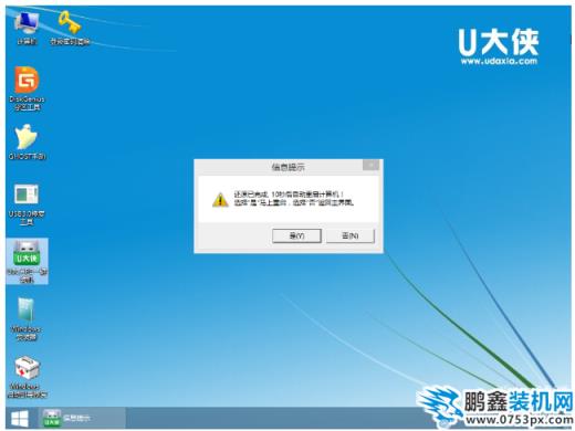 6、接着我们进入解压GHO窗口,等待完成后,我们在弹出是否重启电脑的窗口,选择是选项。