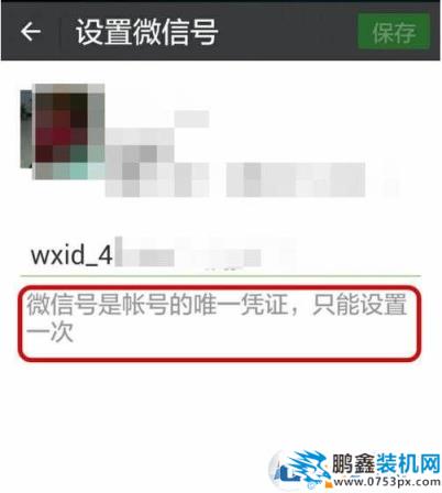 4、接下来输入自己要设置的微信号,当然是要别人没有使用掉的才可以,并且这个微信号只能修改一次!第二次就不可以了。所以大家一定要谨慎修改。