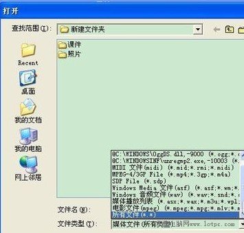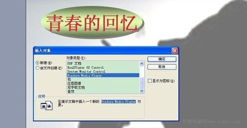 弹出对话框的“对象类型”选项中,点击选择Windows Media Player,然后点击确定