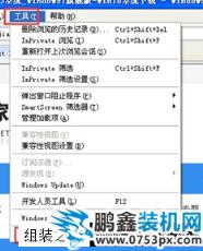 1、解决Internet 选项设置不发的方法,在浏览器菜单栏,选择“工具”项,打开后,选择“Internet 选项”。