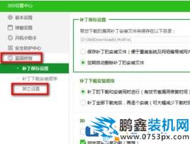 3、点击漏洞修复下方的其他设置,在右侧会话框中出现其他设置窗口,在启用蓝屏修复功能前面的方框打上勾点击确定保存即可。