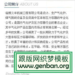 (1)以公司简介栏目为例,网站首页会有显示公司简介的板块,在对应板块位置,输入如下代码: