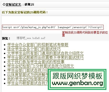 复制“选定的宏标记的JS调用代码,将其添加到网站模板的相应位置即可